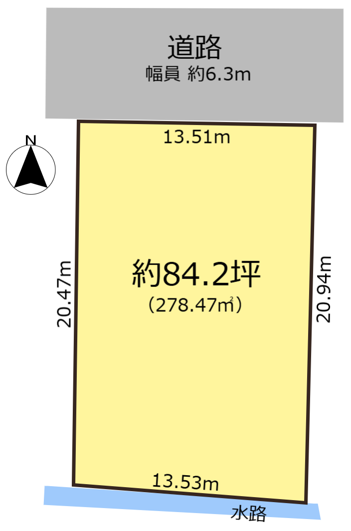 ■ 接道:一方 公道 北側約6.3m 接面13.51m