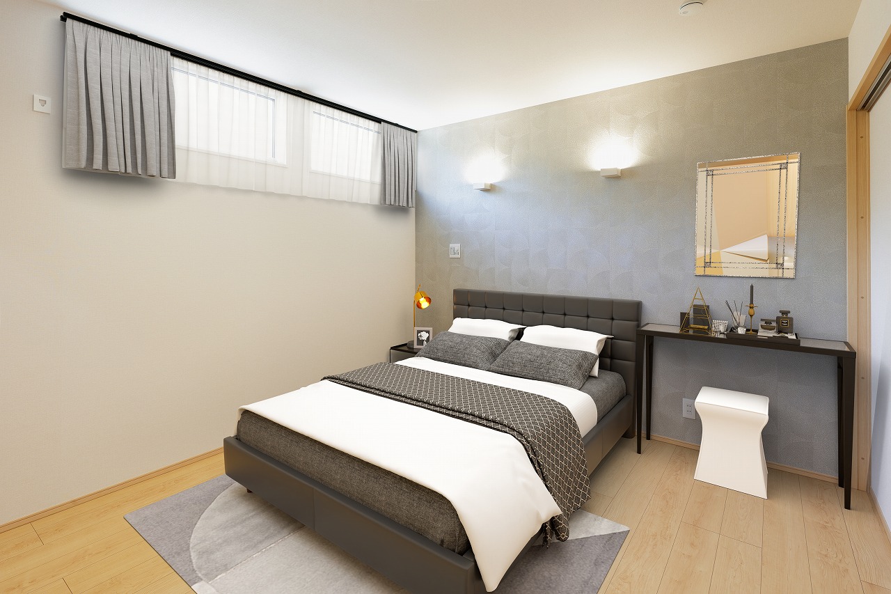 締め色のグレーで落ち着く空間を演出。