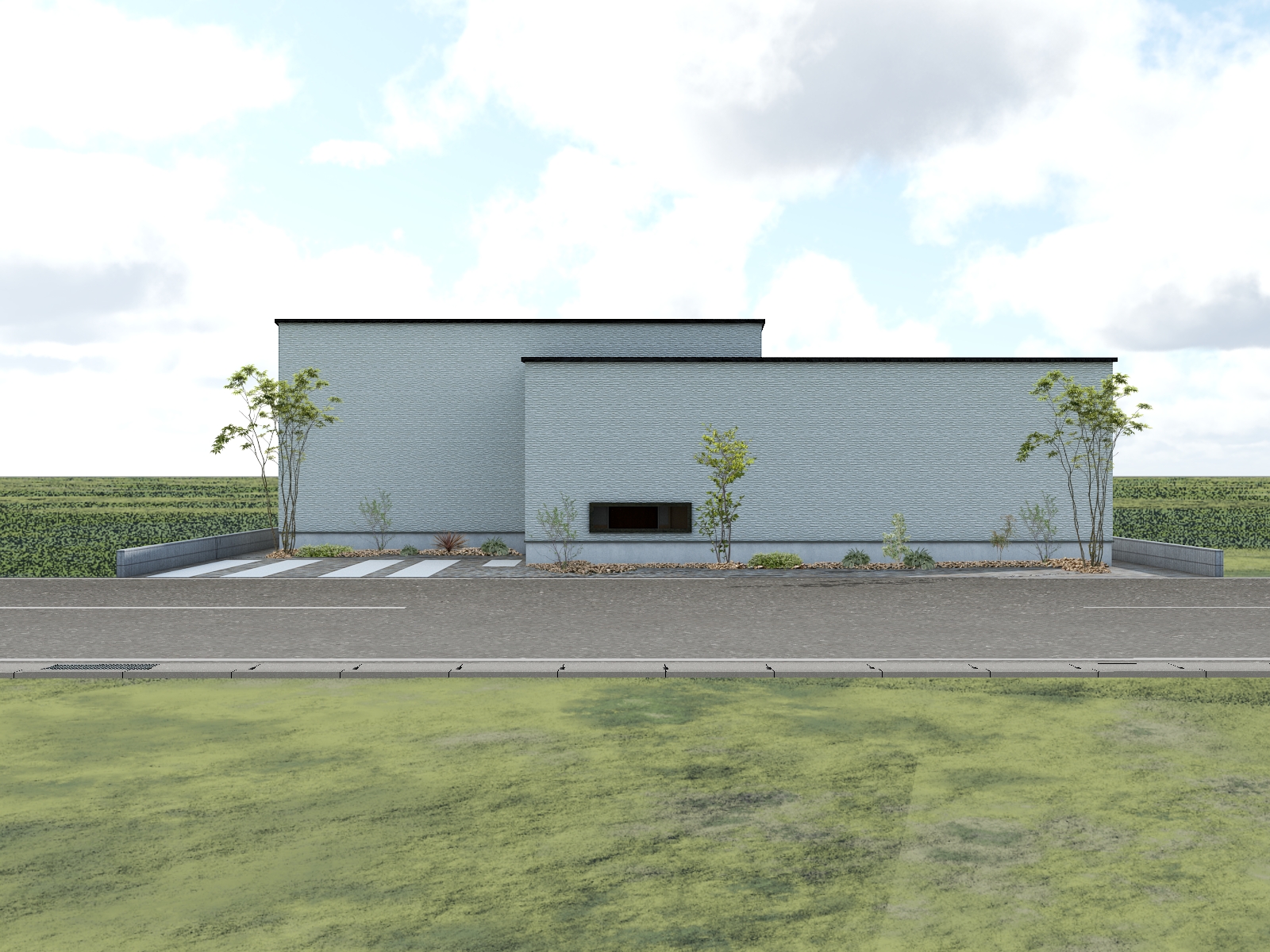 清潔感あふれる白い外壁とシャープな屋根ライン。街並みに溶け込みながらも、一際目を引く洗練されたデザインです。 ※完成イメージ画像