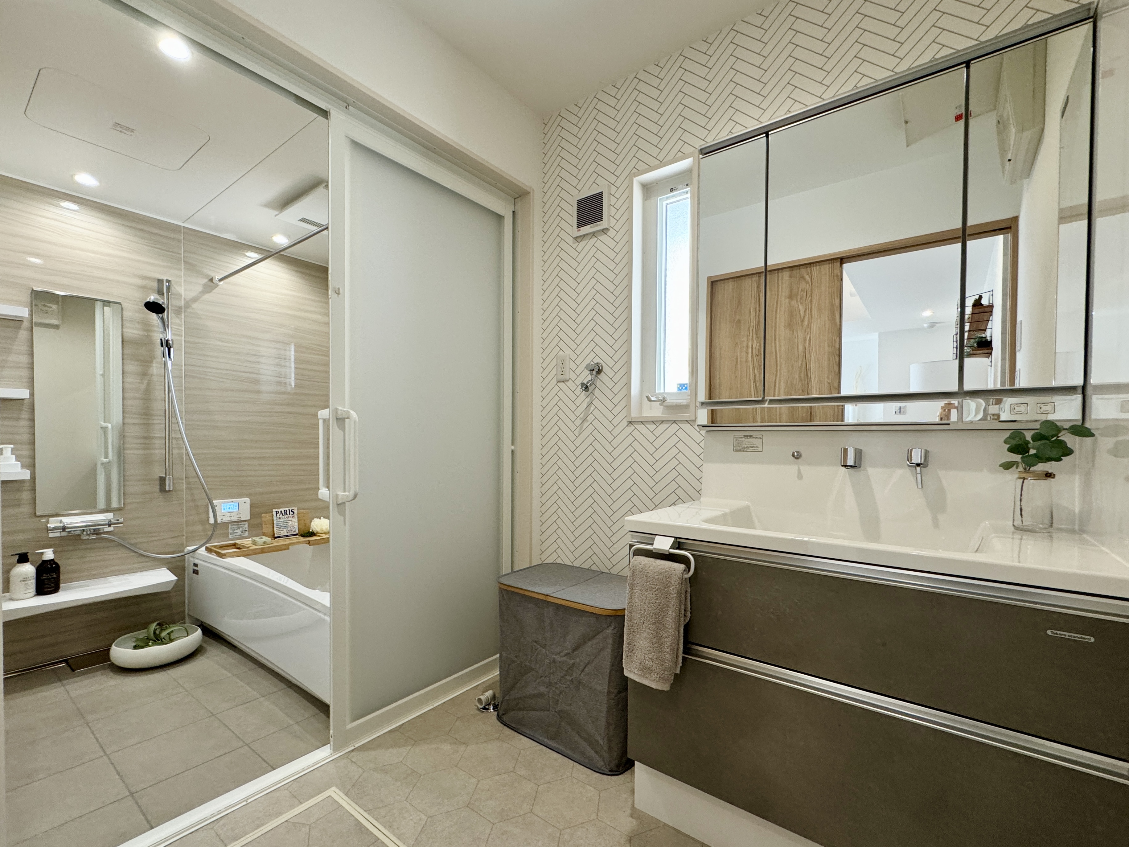 この洗面と脱衣を分けない洗面脱衣室のメリットは、2つ!