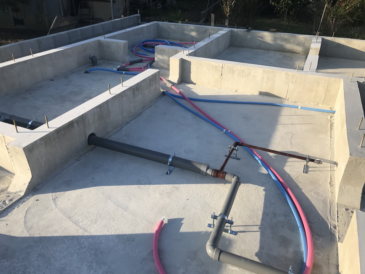 建物内部の水道・排水の配管工事も完了し、次の工程はいよいよ建て方工事です(^^♪
