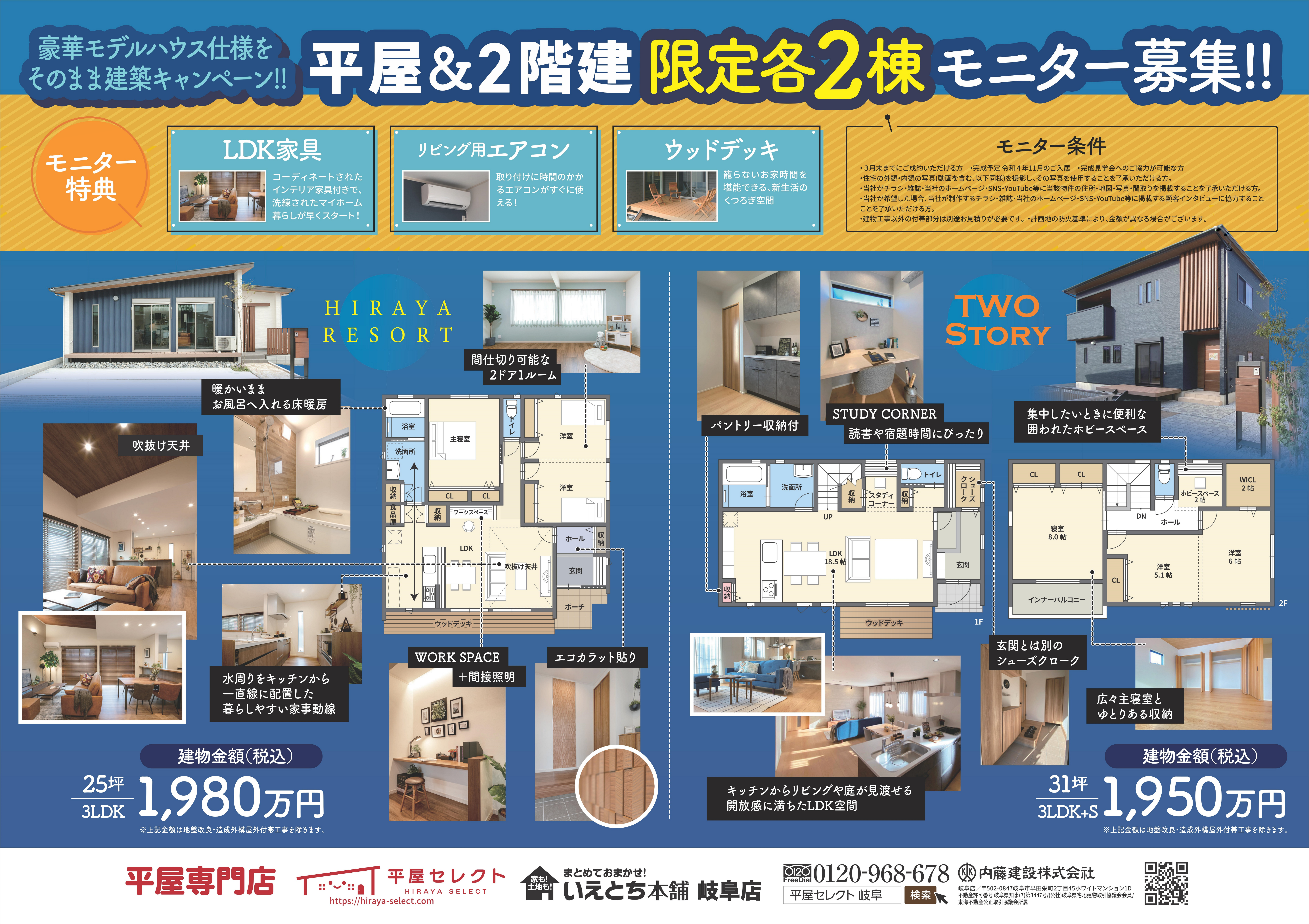 平屋と2階建てのモデルハウスが