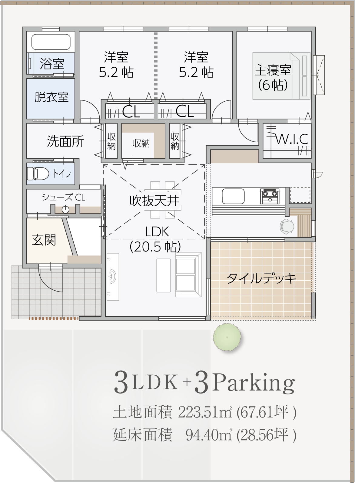 ①タイルデッキ
