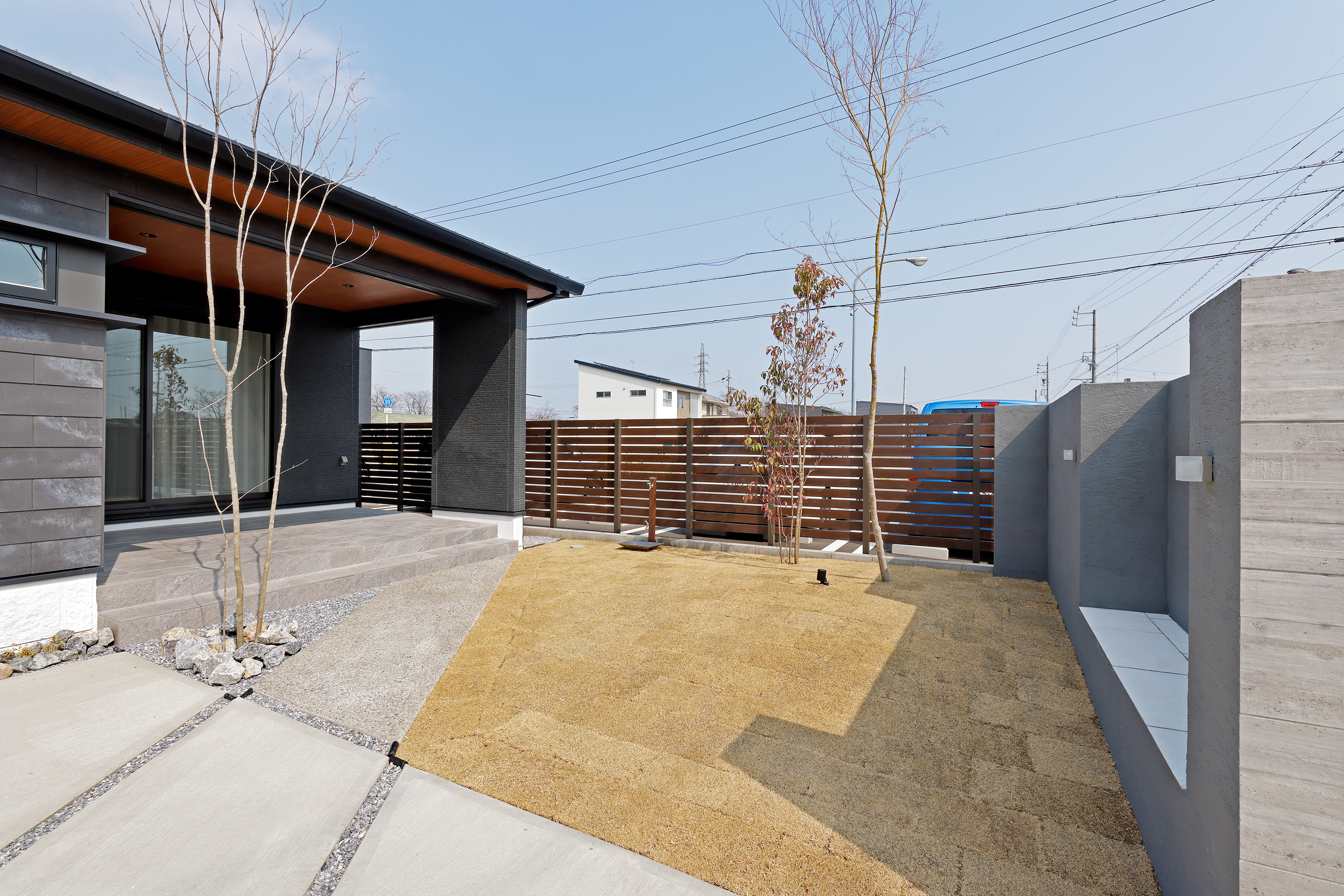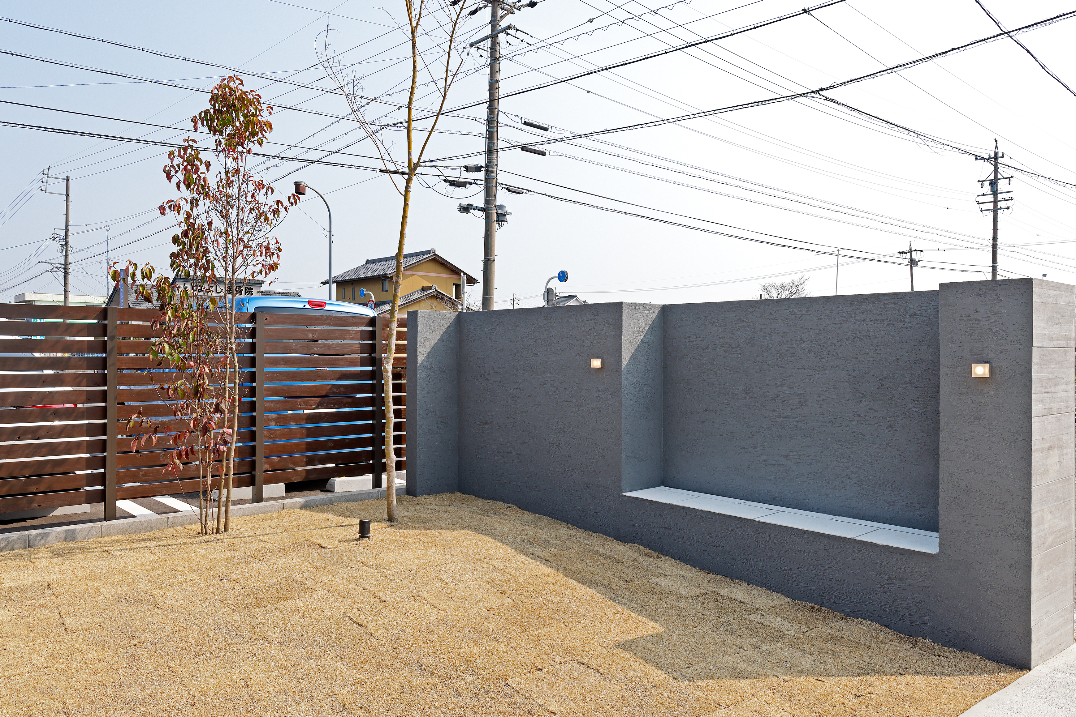 なので、外からの視線を遮る高い塀や植え込みの外構、